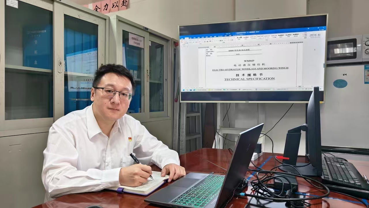馮軒是市場營銷部經(jīng)營員,負責浙江、福建、廣東三省的船舶產(chǎn)品經(jīng)營工作及國內(nèi)船舶市場信息收集整理工作,在參與多項船舶配套產(chǎn)品技術(shù)和商務(wù)洽談中發(fā)揮了重要作用。2024年,馮軒共中標項目32個,承接了批量舵機、克令吊、錨絞機等訂單,其中電動錨絞機占部門全年承接的40%。